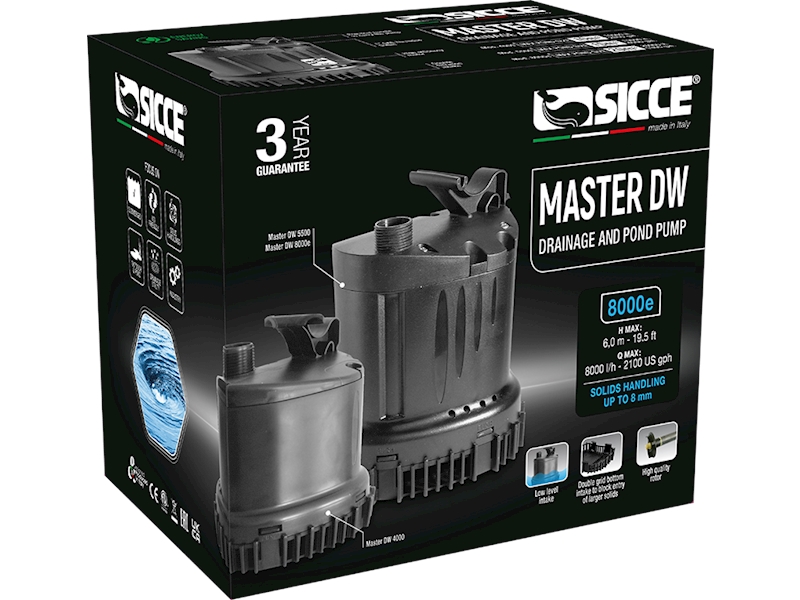 Série čerpadel Master DW je navržena pro zahradní jezírka středních až velkých rozměrů a pro mimořádně znečištěnou vodu, pro vytváření vodopádů nebo pro použití společně s externím filtrem. Odsává nečistoty až do velikosti 8mm. Na trhu je toto čerpadlo opravdu jedinečné a to díky nejlepšímu poměru mezi spotřebou, výkonem a jeho vlastnostmi.